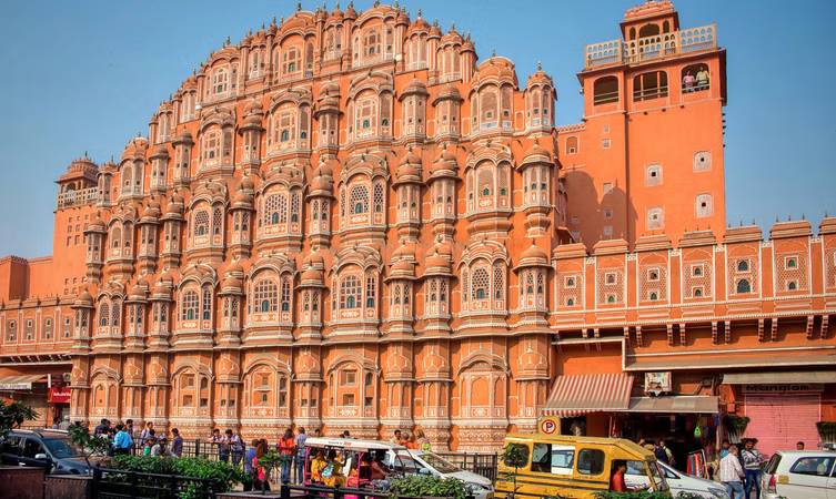 Hawa Mahal, known as the "Palace of Winds", is an iconic architectural marvel in Jaipur, India. The palace was built in 1799 by the Maharaja Sawai Pratap Singh. It is famous for its distinctive honeycomb facade that is adorned with 953 intricately carved windows, showcasing the best of Rajput craftsmanship. The palace is five stories tall and offers panoramic views of Jaipur's bustling streets. This historic monument symbolizes Rajasthan's rich heritage and serves as a testament to its royal legacy.